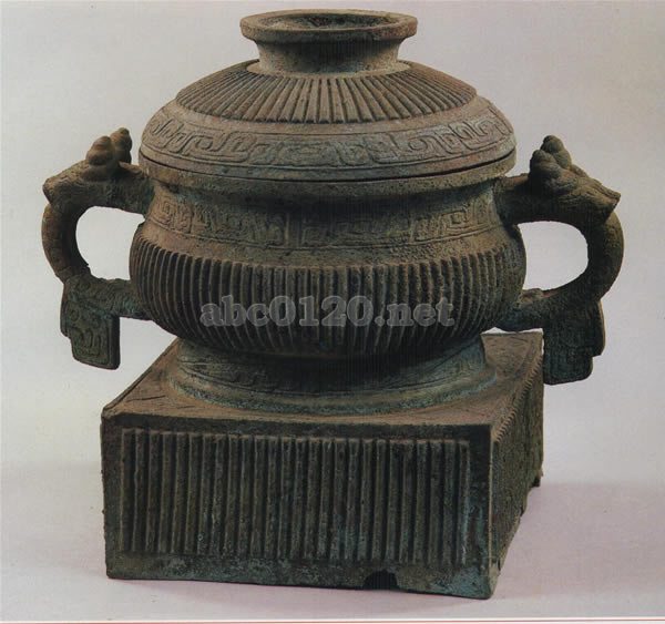 簋は古代の食物を盛る容器で、後世の大碗に相当する。西周から春秋時代にかけて盛行した。戦国時代に入る以前に衰退した。簋は鼎と同じように等級制と権力の標識として作られたが、しばしば鼎と伴出する。出所:中国陝西省文物展悠久の遺産1987