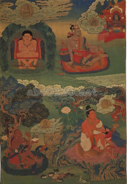 このタンカは、もともと4人の大成就者がそれぞれに描かれている一連の21のタンカに属していた。心の師として中心の本初仏執金剛の絵画の周りに集められたこのシリーズは、インドの金剛乗仏教の伝統に従った行者である84人の大成就者や学僧を表している。テンギュルからの短い伝記的な頌が、このシリーズの中のそれぞれの大成就者に書かれている。