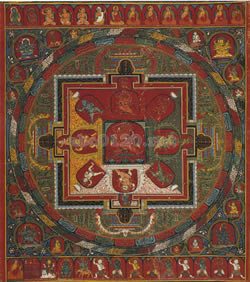 この曼荼羅は、赤色ヤマーりの国土の本質である。神の宮殿を一目で見られるように描かれていて、実際の修法では門より入り、さまざまな部屋に入り、そして最後に赤色ヤマーりとその神妃がいる中央の間に達することを観想する。そこでは、赤色ヤマーりと神妃は、合体の至福にあり、覚りの境地における智慧と慈悲を体現する。宮殿は四部分に分かれ、それぞれが異なる色(東一白、南一黄、西一赤、北一緑)であらわされる。それぞれに色の異なるヤマーリ父母仏がいる。四方の神々の部屋の部分にはそれぞれ独尊の女尊があらわされる。