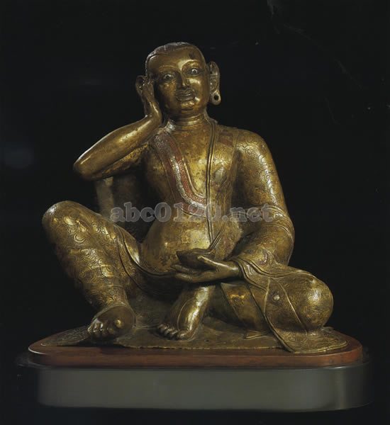 量感や、モニュメンタルな造形、洗練された文様の線は、15世紀第2四半期頃のギャンツェのクンブム寺の彫刻に近い。このミラレパ像もおおよそこれと同じ時期かやや遅れた頃に制作されたものであろう。もし、これが西チベットのものであれば、この像とは、15世紀後半のツァパランの紅の寺の仏像に先行する壮麗な創造的芸術性のある地方様式をあらわしているといえる。出所:天空の秘宝チベット密教美術展