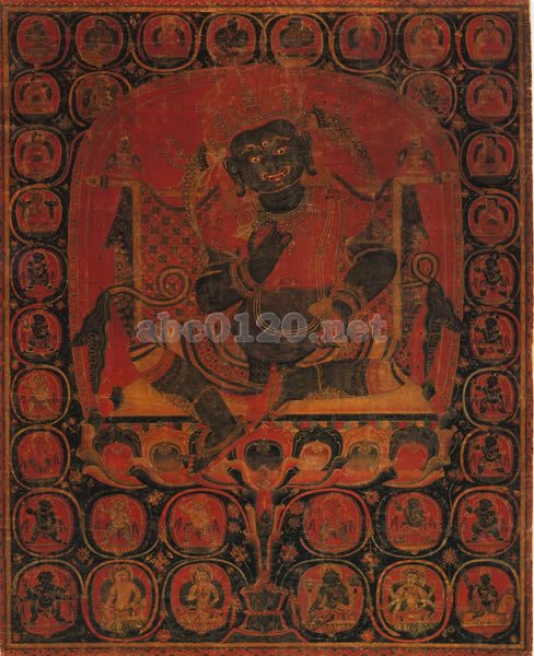 いくつかの要素は、このタンカが、15世紀第2四半期ないし15世紀中期に、チベット中央部で造られたことを暗示している。様式的には、15世紀の高度に様式化されたネパール絵画のいくつかと15世紀第2四半期のギャンツェのクンブム寺の絵画に極めて近い。出所:天空の秘宝チベット密教美術展