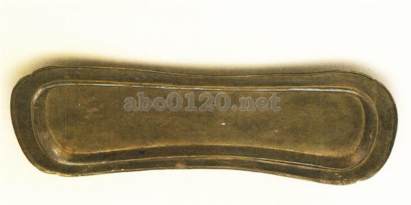 巾広の縁を持つ平底の浅い盆である。表面には何も彫刻されていない。出所:北方騎馬民族の「黄金マスク展」