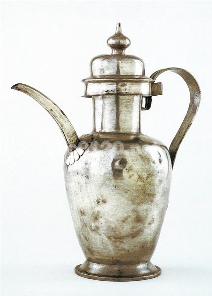 蓋・把手・注口に1がバランスよく備わり,全体に均整のとれた水注である。胴の肩部に多面体の長い注口がつき,その基部を花形座金が飾っている。把手は扁平で表面に縦筋文があり,下端はパルメット形になる。宝珠鈕のつく被蓋には蓋と胴が別々にならぬよう一端に方形の環を設け,これに把手が通されている。