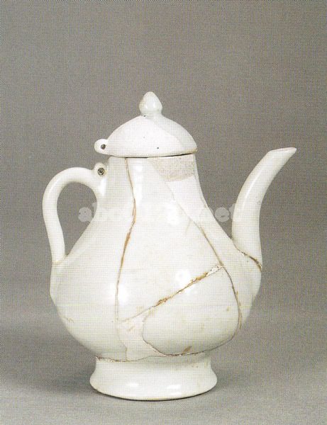 器身は梨形で、内外両面に甜白釉が施される。口部は円形で、蓋には宝珠刀鈕が付く。注口と把手は湾曲している。蓋と把手にはそれぞれ紐通しがつく。高台はやや外反し、内側は全面に施釉される。胴部の五爪雲龍二体、注口と高台の唐草文はいずれも錐彫で表わされている。類品で宝相華文を刻したものや、無文の例がある。梨形水注は元代に初めて作られた器で、この永楽の水注は元のものに比べて、少し小さい。出所:皇帝の磁器-新発見の景徳鎮官窯
