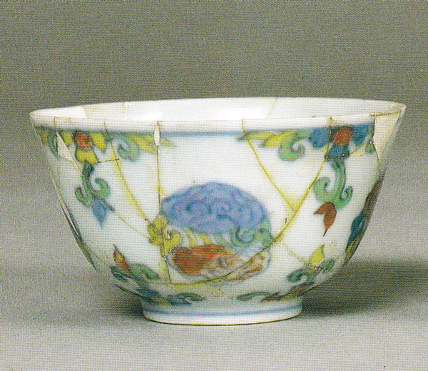 明・清|陶磁器|>豆彩霊芝文杯 |