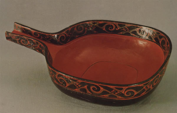 前漢 高8.2cm 長34.1cm 木・漆 1972年湘南省長沙馬王堆一号墓出土 湖南省博物館蔵 盛水器。木胎。内側は朱漆,外底は黒漆を塗る。外底の中央には朱漆で「軑侯家」の3字が書かれており,軑侯利蒼家の所有であることがわかる。出所:『中華人民共和国出土文物展1977』 関連用語: