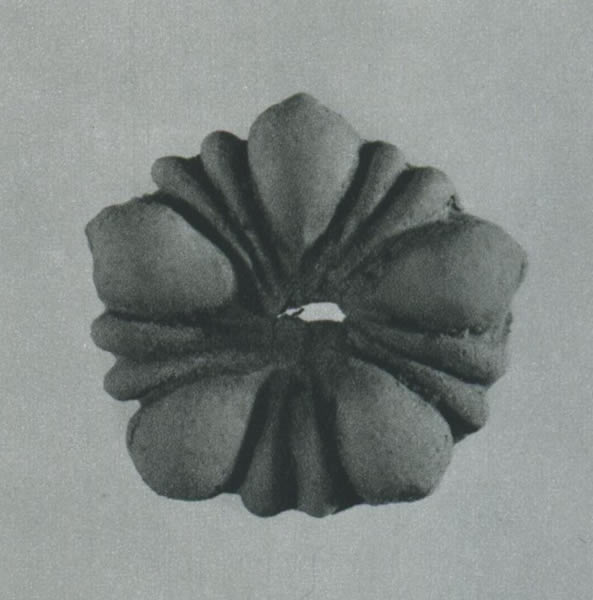 唐 径4㎝ 厚1.3cm 1966年新疆吐魯番出土 新疆ウイグル自治区博物館蔵 この一帯の墓葬から,小麦粉でつくった餃子やワンタン,小麦粉と油をこねてつくった各種の花型の菓子が発見された。このことは当時この地方の人々の生活習慣が内地と何ら変わらなかったことを十分に証明している。出所:『中華人民共和国出土文物展1977』 関連用語: