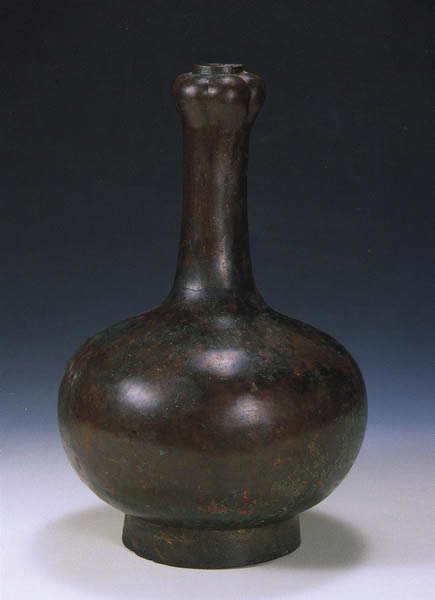 壺の口部分が丸く、ニンニク(現代中国語で蒜頭)のように6つの弁に分かれていることから名づけられた。全体的に丸い形で、紋様などの装飾は施されていない。もともと水や酒を入れる器であり、睡虎地秦墓をはじめとする各地の秦人の墓に副葬されていることから、秦人の典型的な持ち物であったと考えられている。出所:「大兵馬俑展」
