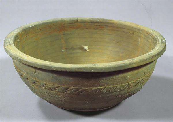 盆とはおけのこと。これも陶罐と同じく、馬厩坑から出土したもの。実際に馬が水を飲んだり、エサを食べるときのかいばおけとして使われたものだろう。中国の故事に起源をもつ「覆水盆に返らず」(一度してしまった事は取り返しがつかないという意味)ということわざの「盆」とは私たちが今見るような平たいお盆ではなく、このような底の深い「おけ」のことを示している。