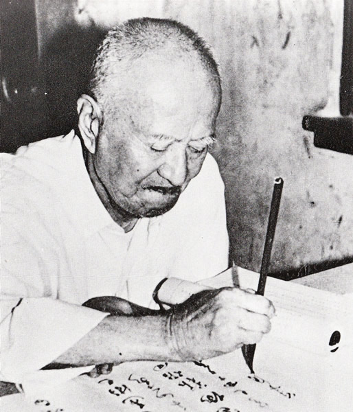 著名書道家、画家。林散之は、16才より絵を学び、19才の時、私塾を開くとともに、書の勉強を始めた。初め唐時代の顔、柳の書体を学び、追って北魏の龍門20品を学んだ。数年後、独力で、張猛龍等の諸魏墓誌や漢碑及び二王諸帖を学んだ。同時に詩文も学んだ。 30才の時、黄濱虹先生につき、絵を学び、数年後、天他間に真髄を求めたいと発心して、有名な山河を遊覧して歩く。江蘇七省を経由して安徴省まで1万8000余里の間に800枚余りの下絵、200余首の詩、数篇の遊覧記を書いた。解放後、安徴表人民代表大会代表、第5期全国政治協商会議委員などの要職を歴任した。1962年より、汪蘇表国両院画師とた。出所:「中国栄寶斎展覧」