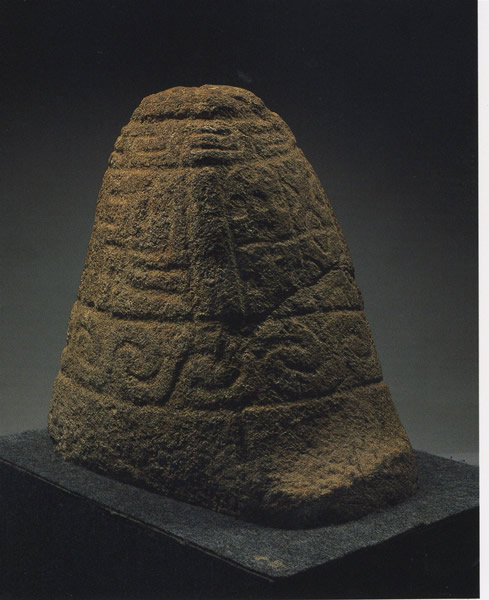 四面をそれぞれ水平に三つに区画し、上の区画にメアンダー、下にはランニング・ドッグを刻む。最も広い中央の区画にはそれぞれ、左回転のスワスティカ、四つのX形、四枚のヤドリギの葉、四枚の「風車の羽根」を表し、頂にはXを刻んでいる。四つの面は四方、宇宙の秩序を意味し、ケルトの「オンフアロス」として宗教儀礼と結びつけられる。