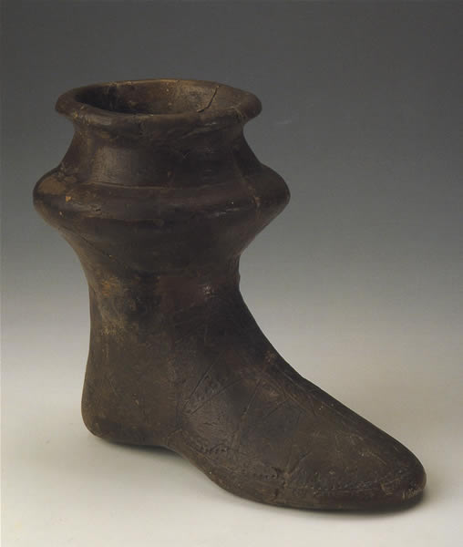粘土,高さ11.5cm,口の径6.5cm,靴の長さ12.2cm