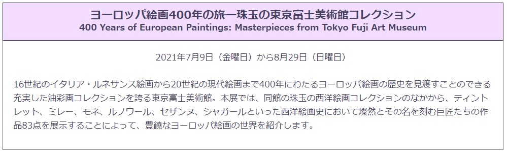 名称:「ヨーロッパ絵画400年の旅―珠玉の東京富士美術館コレクション」岡山県立美術館