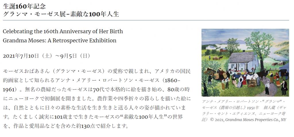 名称:生誕160年記念「グランマ・モーゼス展−素敵な100年人生」名古屋市美術館