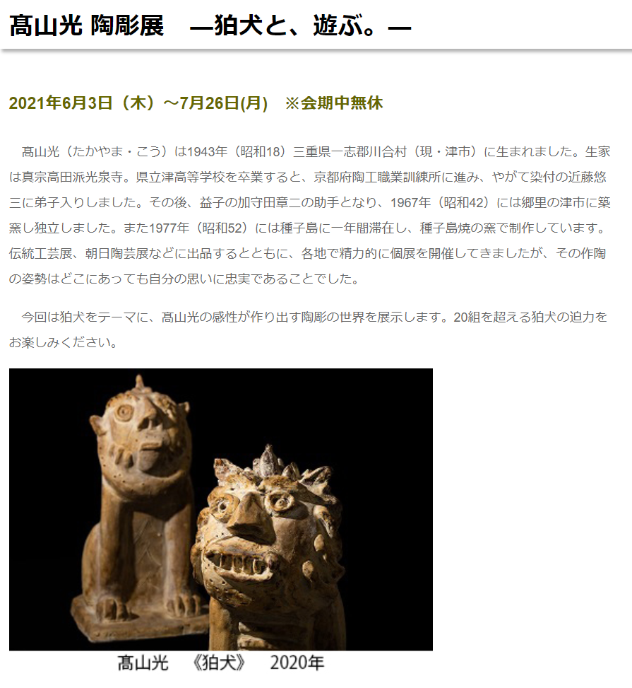 名称:「髙山光 陶彫展 ―狛犬と、遊ぶ。―」パラミタミュージアム