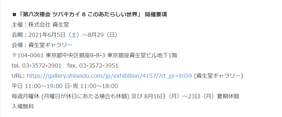 名称:「第八次椿会 ツバキカイ 8 このあたらしい世界 」資生堂ギャラリー