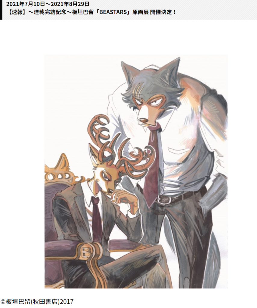 名称:~連載完結記念~板垣巴留「BEASTARS(ビースターズ)展」北九州市漫画ミュージアム