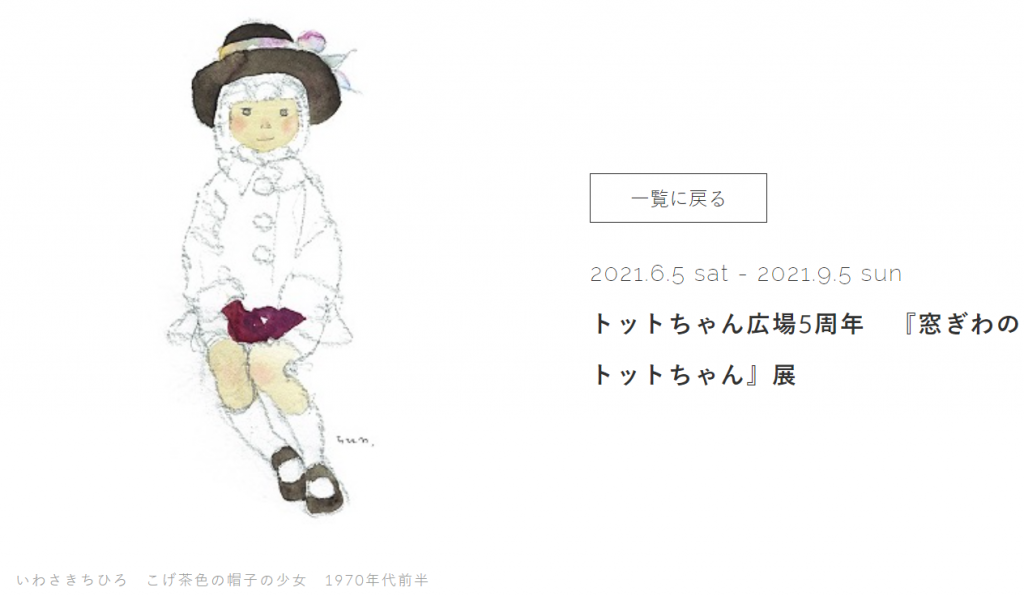 名称:「トットちゃん広場5周年 『窓ぎわのトットちゃん』展」安曇野ちひろ美術館