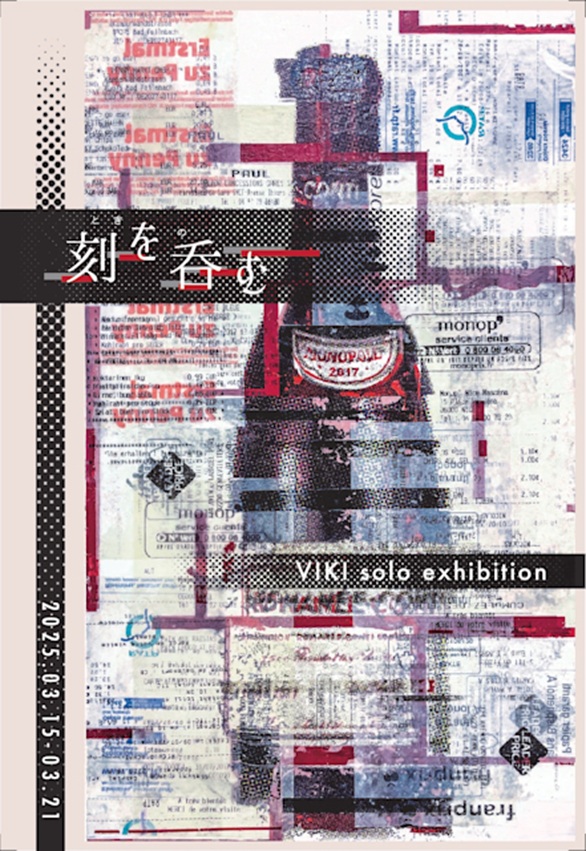 この度、ギャラリー自由が丘では、「記憶のリサイクル」をコンセプトに制作を続ける現代アーティスト、VIKI(ヴィキ)の個 展「刻を呑む(ときをのむ)」を開催いたします。本展では、VIKIの代表シリーズである[mirrorge]の新作を含む約10点の作品を展示します。本展の作品は、消費の記録であるレシート、熟成を象徴するワイン、そして自然と社会が繰り返す循環をテーマに、私たちの日常に潜む消費と時間の関係性を探 ります。過ぎ去る時間がただの消耗として失われるのではなく、どのように記憶を刻 み、未来へと繋がる循環を生み出していくのか。消費社会の加速や気候変動という背景の中で、個人の行動が未来にどのような記憶や循環を生み出すのかを私たちに問いかけます。