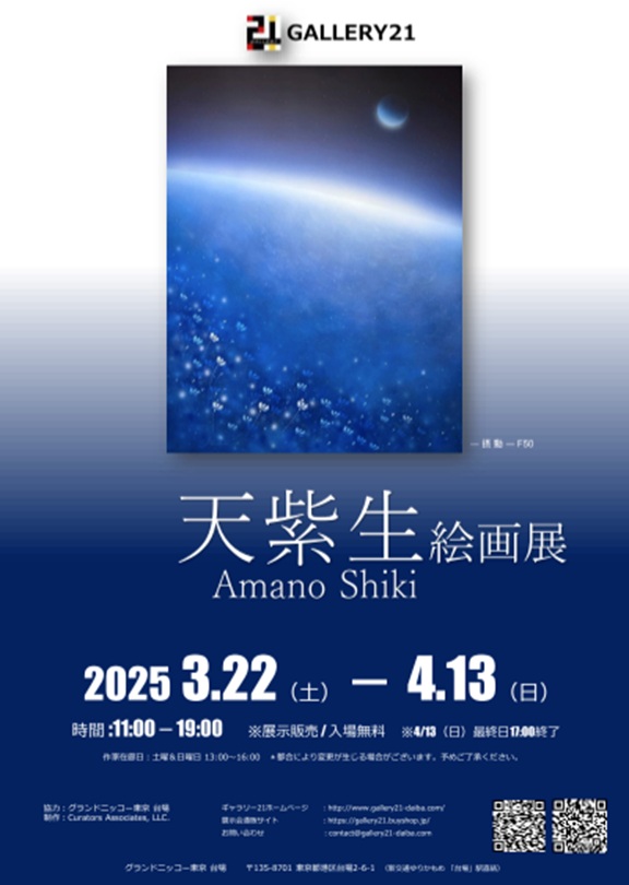 東京お台場にあるGALLERY21では、3月22日(土)より4月13日(日)まで、Cosmos(宇宙)と花をモチーフに神秘的な色彩と無限大のメッセージを画面に展開しつつ、壮大なテーマの中に佇む、独特の世界観を表現する孤高の画家、“天紫生(あまのしき)絵画展”を開催致します。