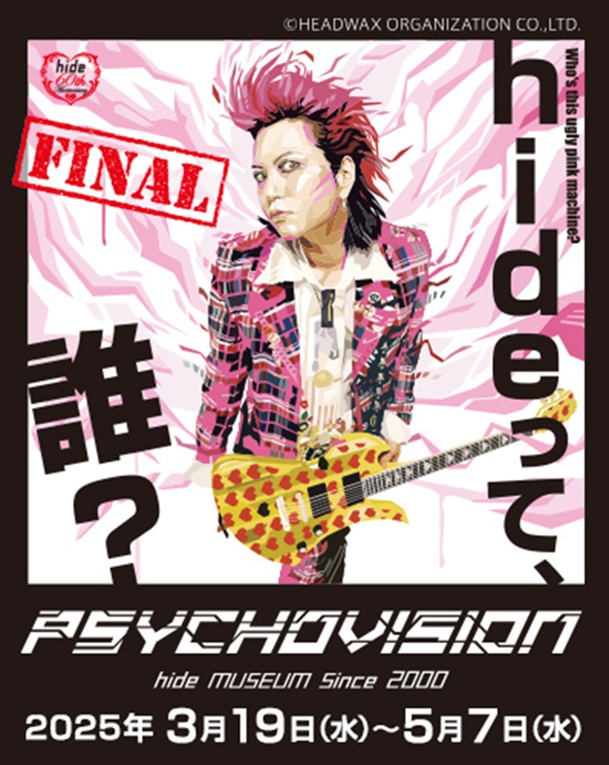 X JAPANのギタリスト“HIDE”として、ソロアーティスト(hide with Spread Beaver/zilch)として、日本の音楽シーンに多大な影響を与え続ける“hide(ヒデ)”。昨年12月13日にhideが生誕60周年を迎え、「hide 60th Anniversary」プロジェクトが盛り上がりをみせる今年、2021年から東京・名古屋・大阪・福岡で開催され各メディアでも話題となった、hide特別企画展「PSYCHOVISION hide MUSEUM Since 2000(サイコビジョン ヒデ ミュージアム シンス 2000)」が、そごう美術館(そごう横浜店6階)にて開催されます。