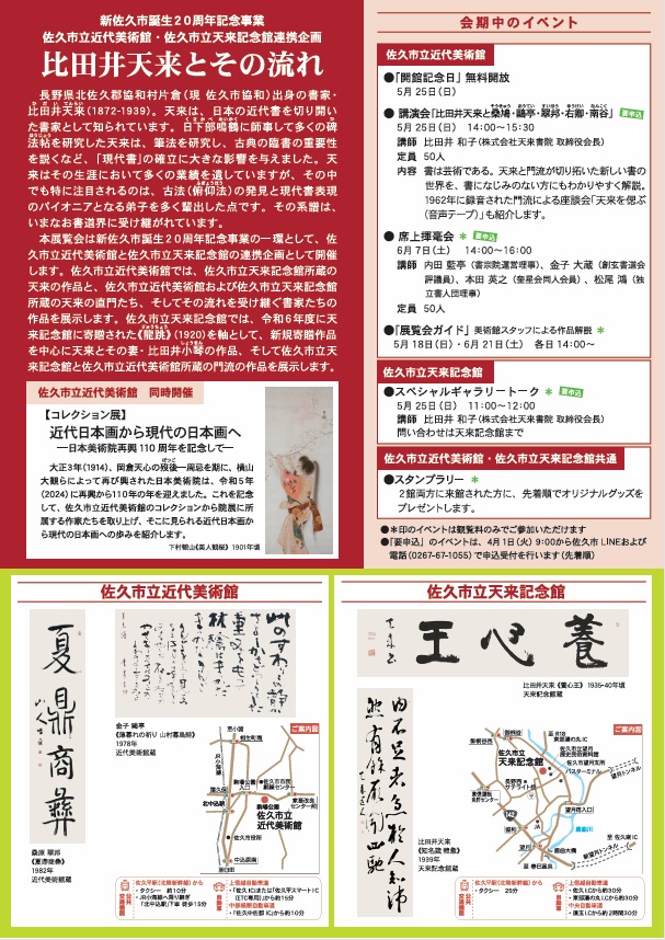 名称:新佐久市誕生20周年記念事業 佐久市立近代美術館・佐久市立天来記念館連携企画「比田井天来とその流れ」佐久市立近代美術館 油井一二記念館