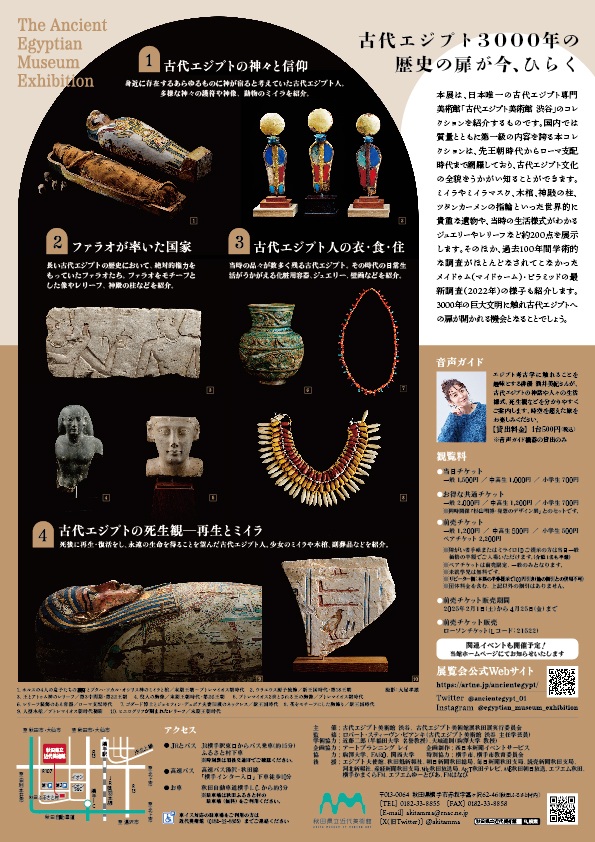 主催:古代エジプト美術館展秋田展実行委員会(秋田県立近代美術館・ABS秋田放送)、古代エジプト美術館 渋谷