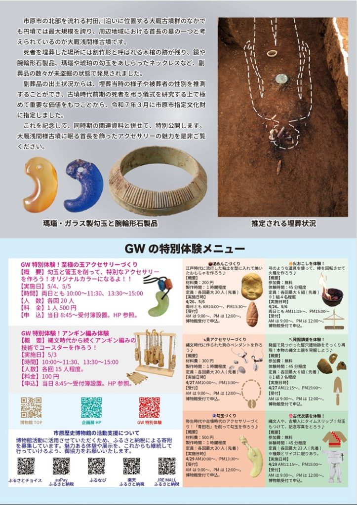 これを記念して、同時期の関連資料と併せて、特別公開します。大厩浅間様古墳に眠る首長を飾ったアクセサリーの魅力を是非御覧ください。