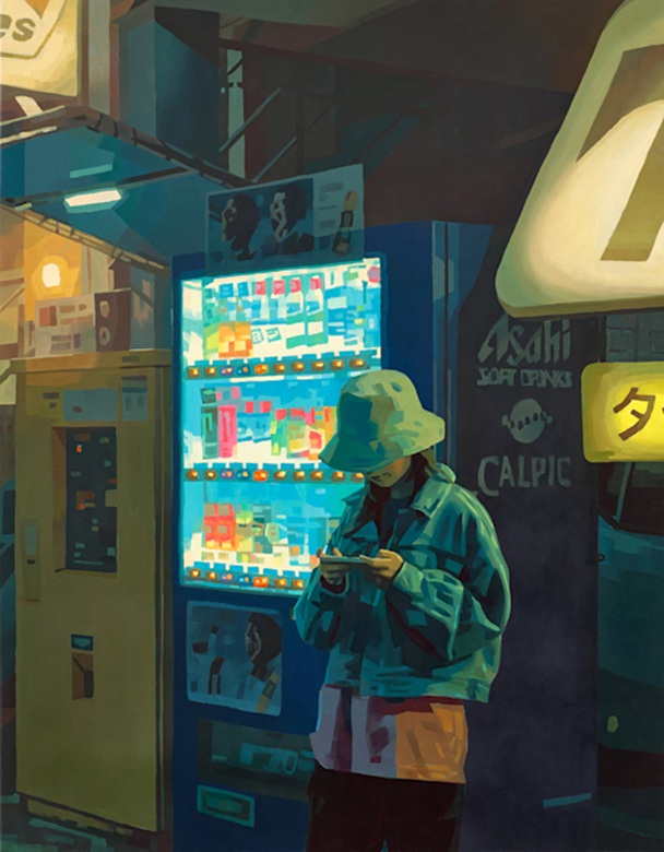 森本は16歳でカナダへ移住し、同国を中心に海外で油彩画を発表してきました。2021年以降は東京とカナダの二拠点で活動をしています。風景画や人物画を、ドラマチックな光の表現と古典技法を用いて、ありふれた街並みを劇的な世界へと変貌させます。自動販売機やファストフード店、駐車場といった日常的な主題に焦点を当てることで、現代生活における構造的な脆弱性や道徳的規範に疑問を投げかけます。
