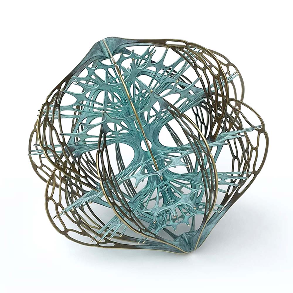 透かし彫りとロウ付による生命の息吹や小宇宙を感じる集合体を生み出す久米圭子氏。