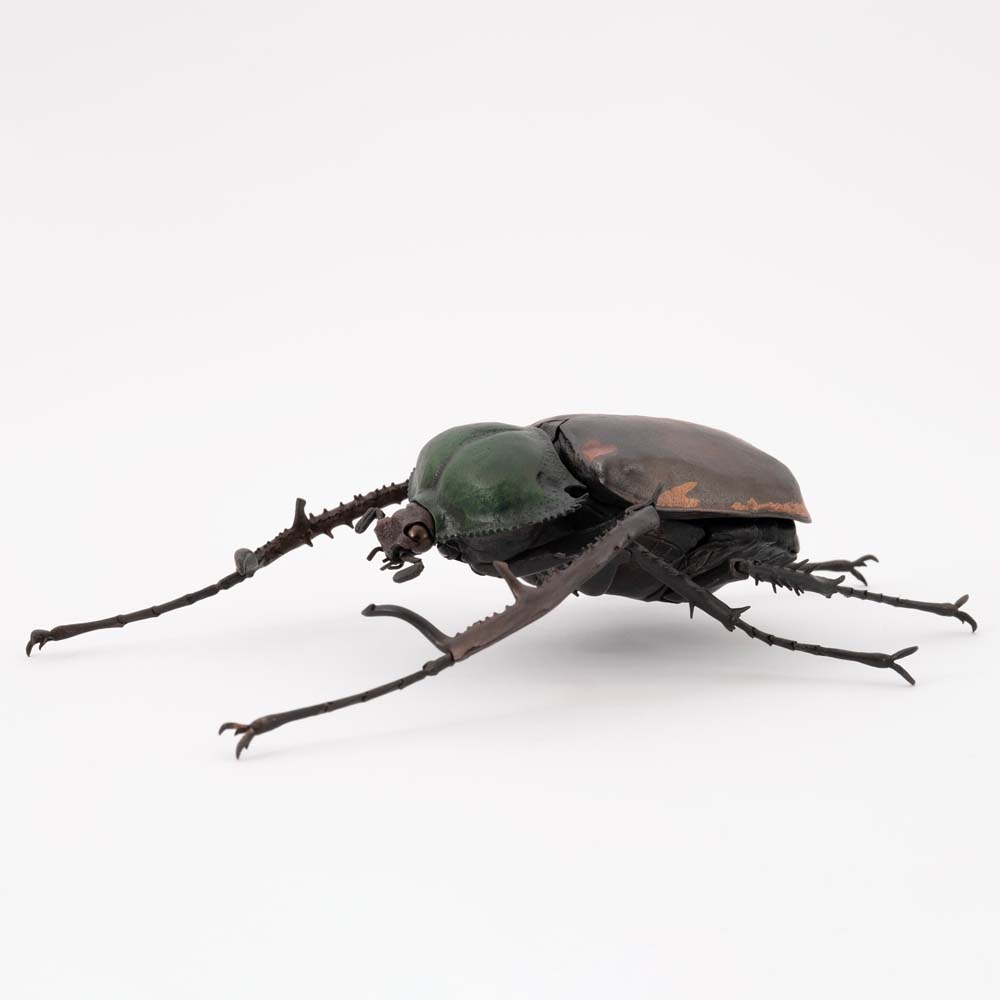 本物と同じように可動する「自在置物」の技で昆虫類を原寸大で制作する満田晴穂氏。