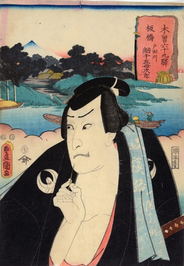 ![三代歌川豊国「木曽六十九駅 板橋 戸田川 網干左母