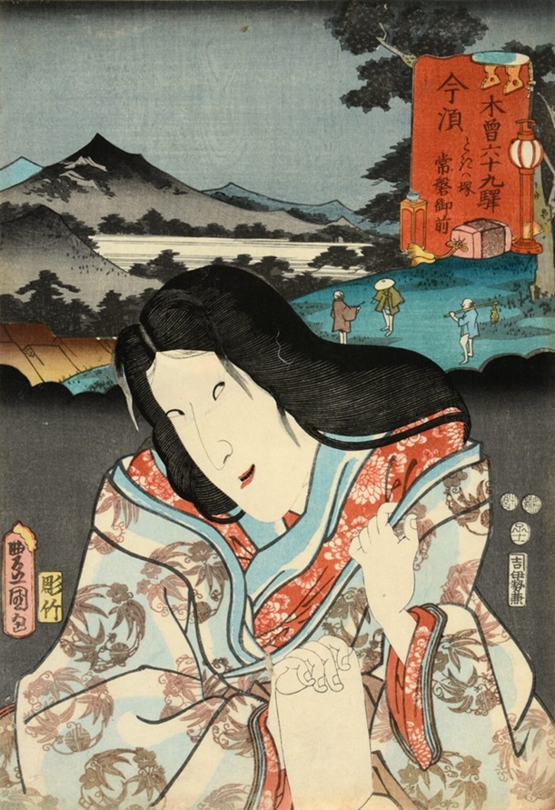 ![三代歌川豊国「木曽六十九駅 今須 ときハ塚 常磐