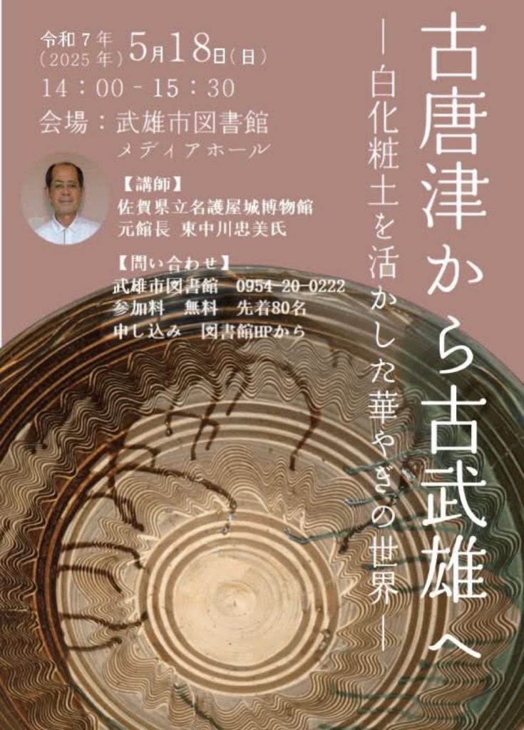 名称:講演会「古唐津から古武雄へ-白化粧土を活かした華やぎの世界-」武雄市図書館
