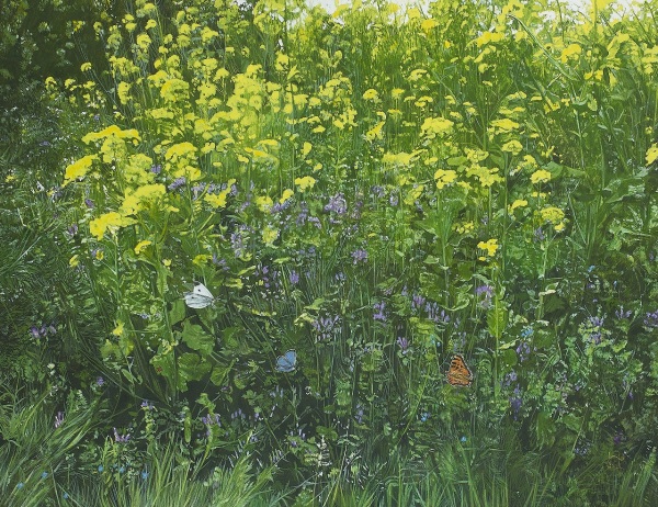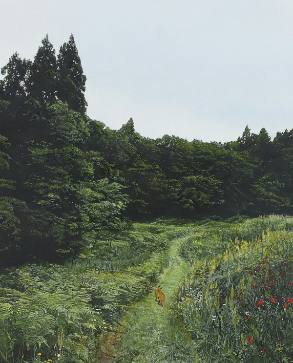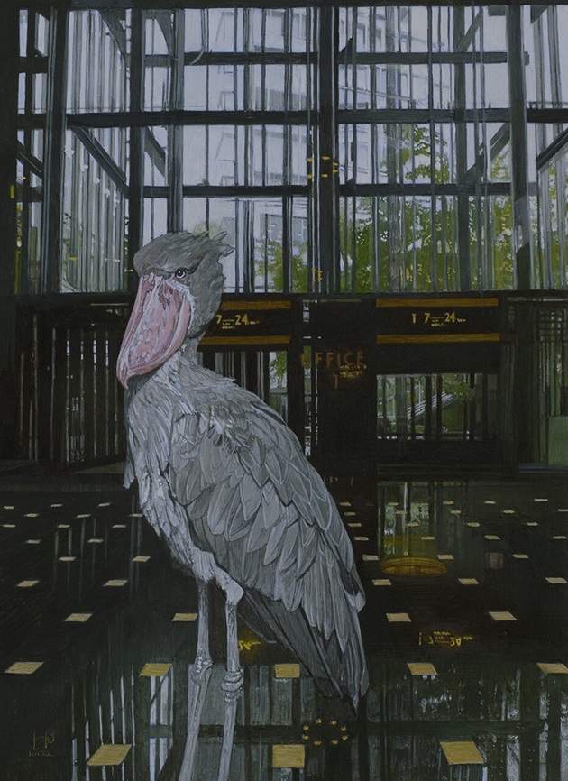 じっと見つめる眼差しが明確な設計図を作り上げ、画面の下地作りから手間暇かけて行うテンペラ技法で一筆一筆丹念に色彩が置かれ完成に向かっていく仕事は変わらぬ冴えを見せています。また動物も氏の得意とするモチーフですが、今回も蝶やカワセミ、キツネなどが登場、さらに近年動かない鳥として有名なハシビロコウもユーモラスな趣を添えます。人間の眼が、手が、精妙なる美の世界を創り出すことの驚きと不思議さを味わうべく、ぜひご高覧くださいますようご案内申し上げます。