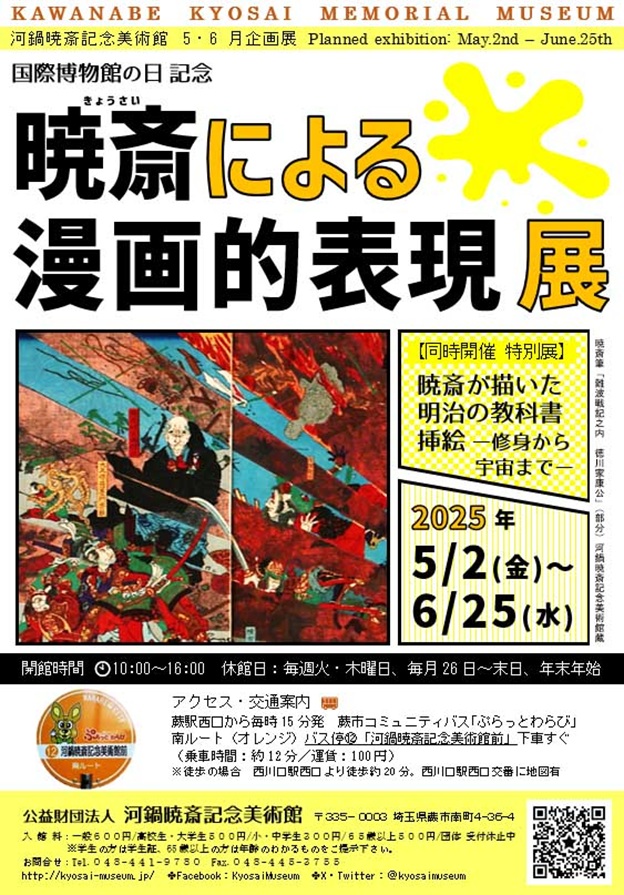 名称:企画展「国際博物館の日記念 暁斎による漫画的表現」展(同時開催:特別展「暁斎が描いた明治の教科書挿絵―修身から宇宙まで―」展)河鍋暁斎記念美術館
