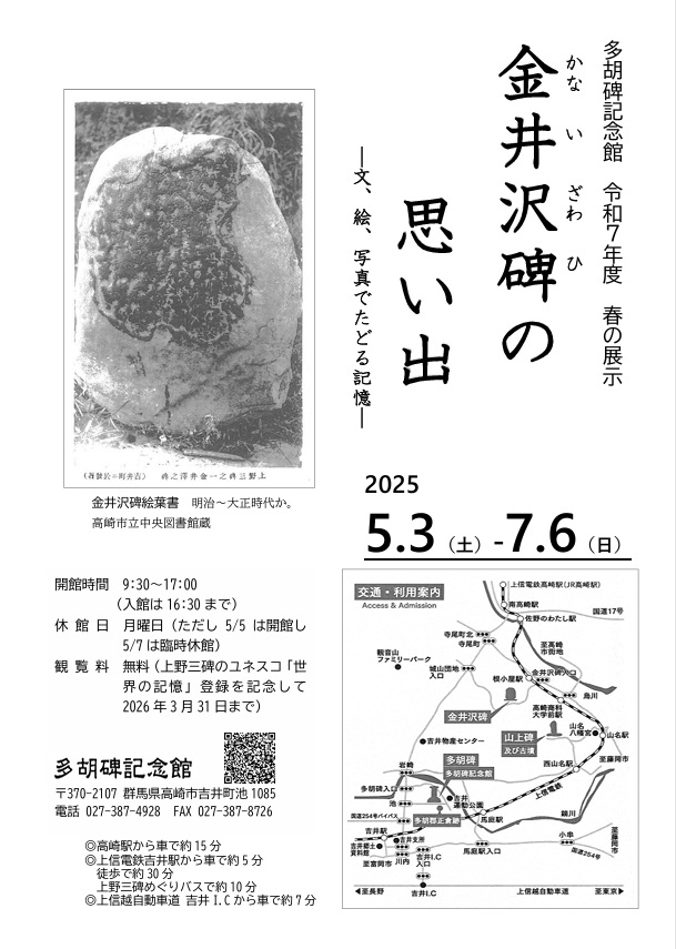 名称:春の展示「金井沢碑の思い出-文、絵、写真でたどる記憶-」多胡碑記念館