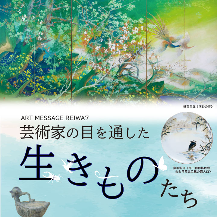 新緑のあふれる季節。東石美術館ではさまざまな動植物が生き生きと表現された美しい作品を展示いたします。芸術家たちが、何を感じ、どのような想いを込めてこの作品を生み出したのか。 それぞれの作品に込められた物語を想像しながら、生命の多様性とその美しさを感じてください。今回は日本(日本画、洋画、彫刻、彫金)、中国(陶磁器)・中近東(ペルシア陶器)など、各国で創られた多彩な銘品をお楽しみいただけます。