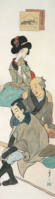 竹久夢二(1884-1934)は独学で絵画、詩、デザインなどマルチな才能を発揮した大正ロマンを代表するアーティストでありますが、「大正の歌麿」とも称されています。このたび夢二のスクラップブックがご遺族の方から寄贈を受け当館の所蔵となりました。独学だった夢二を知るカギとなるスクラップブックにも掲載されている西洋の絵画やデザイン、日本の絵画などと共に浮世絵がありました。このたびの調査でスクラップブック「艸」には170を超える浮世絵が貼り込まれていることが確認できました。夢二は浮世絵のどこに魅了され、自らの作品にその要素を取り入れたのでしょうか。本展ではスクラップブックの浮世絵を紐解き、関連のうかがえる夢二作品を木版画から肉筆画、書籍の装丁まで多方面にわたって展観いたします。