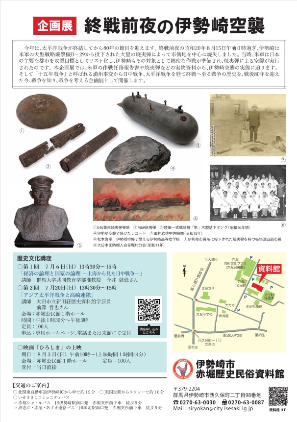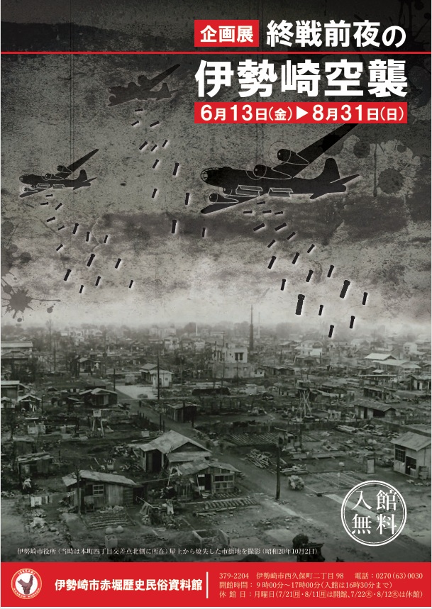 名称:企画展「終戦前夜の伊勢崎空襲」伊勢崎市赤堀歴史民俗資料館