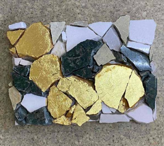 木のパネルにジェッソ. 墨 . 木炭、銀粉