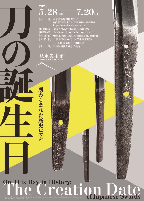 令和2年度に開催しました展覧会「刀の誕生日」は 、新型コロナウイルス感染拡大をうけ、1週間という短い期間で閉会の運びとなりました 。このたび、3階鑑賞室におきまして、本展覧会を再度開催いたします。約千年にわたる日本刀の歴史と発展をこ紹介するべく、製作年号など年代を明らかにする銘文である「紀年銘」が残る作品を中心に選び、刀が生まれた時代の出来事や文化を合わせてこ紹介するものです 。長い年月を 経て現代に残る名刀の誕生日に思いを馳せて鑑賞をお楽しみください。