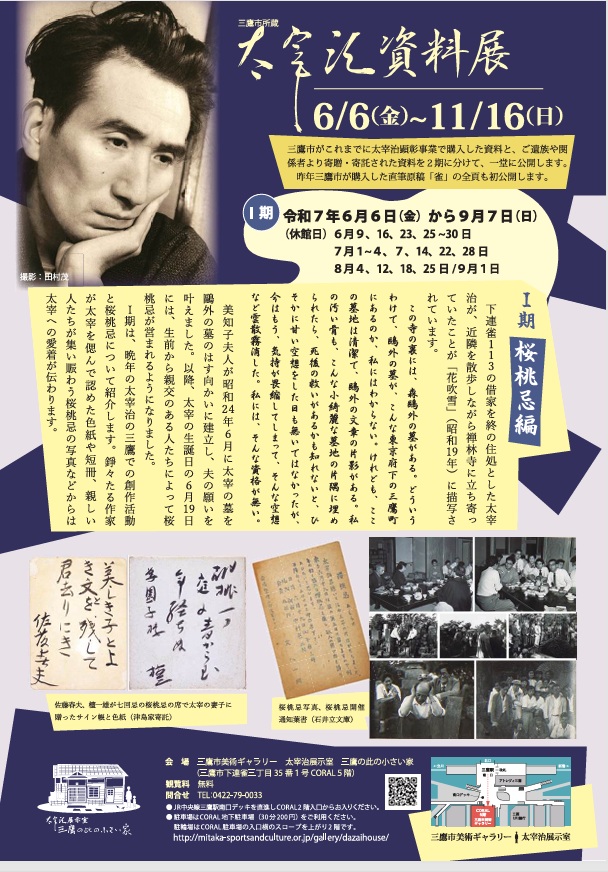 名称:企画展示「三鷹市所藏 太宰治資料展 I 期 ~桜桃忌編~」三鷹市美術ギャラリー