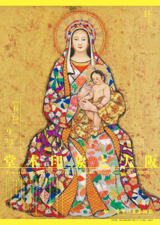 堂本印象(1891-1975)と大阪との関係は深く、初期から晩年まで約60年に及びます。本展では、大阪・関西万博の開催を記念し、大阪を舞台に行われた印象の芸術活動を紹介します。図案家として働きながら画家活動をしていた20歳の頃の風俗画をはじめ、日本画家となってから手掛けた四天王寺の五重宝塔の仏画、戦後、大阪高松カテドラル聖マリア大聖堂(大阪玉造教会)のために制作した聖母マリア像の壁画や、1970年の大阪万博の万国博ホールの緞帳の原画など、多彩な創作を行いました。その軌跡をたどります。