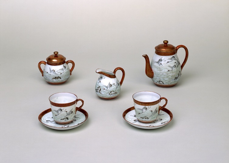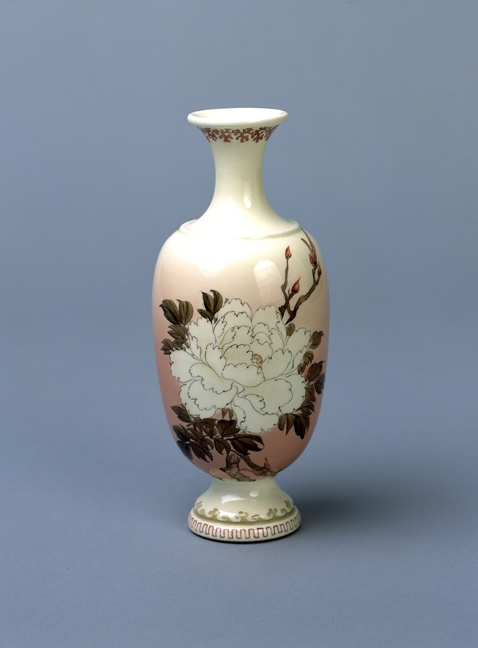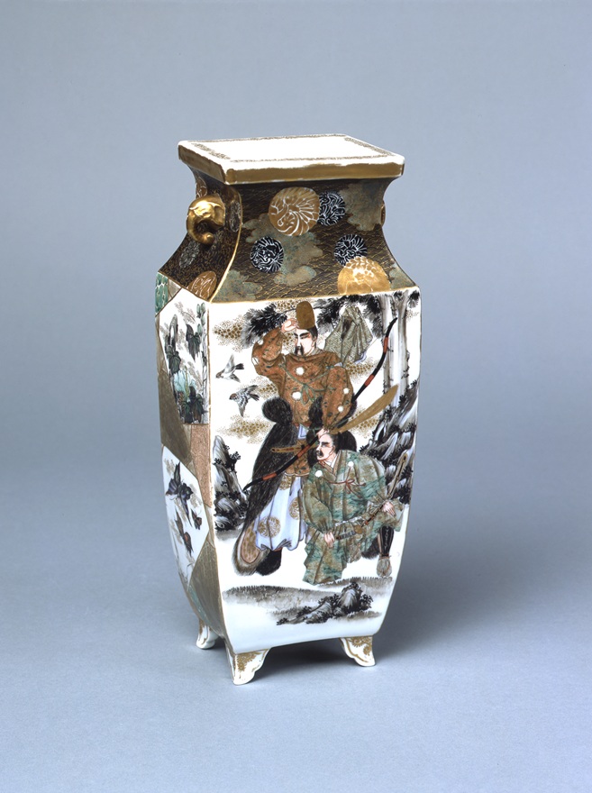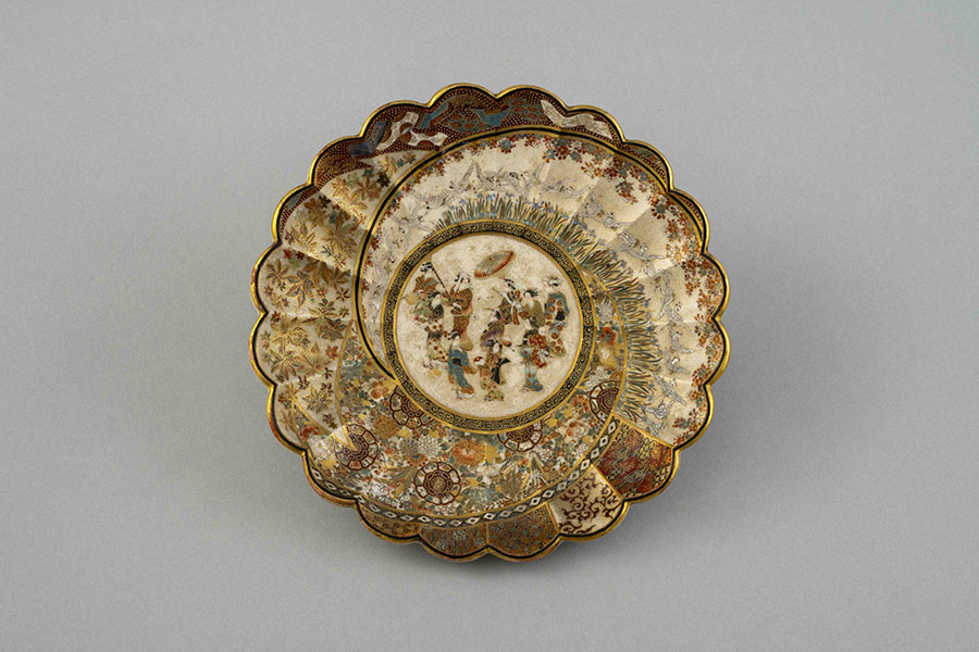幕末から欧米諸国に広まったジャポニスムの影響により、日本の工芸品は人気を博しました。明治という新たな時代に入り、政府として初めて参加した1873年(明治6)のウィーン万国博覧会(オーストリア)での成功は、さらなる輸出品の製造を後押しし、有田(佐賀県)や薩摩(鹿児島県)、九谷(石川県)、横浜(神奈川県)などの地域で豪華絢爛な陶磁器が盛んに作られました。輸出工芸品の図案集『温知図録』が政府によって編纂されるなど、国内外の博覧会への出品や輸出が大いに奨励され、陶磁器製造が殖産興業とも深く結びついた時代です。