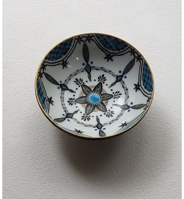 1978年岐阜市生まれ。京都伝統工芸大学校卒業後、 加賀市の山本芳岳氏に師事され、5年間主に上絵全般を学びました。2013年に独立し、京都市内の共同工房にて制作、昨年、ご自身の窯で制作を始められました。伝統的な赤絵の技法である組小紋に、絵を入れるなど現代的なデザインを取り入れ、新しいアイデアで赤絵の世界を広げていらっしゃいます。今展では赤絵のほか黒と青の上絵作品も発表いたします。