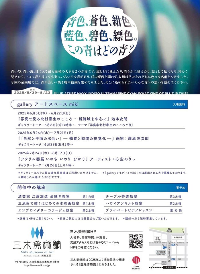 名称:「青色、蒼色、紺色、藍色、碧色、縹色。この青はどの青?」三木美術館