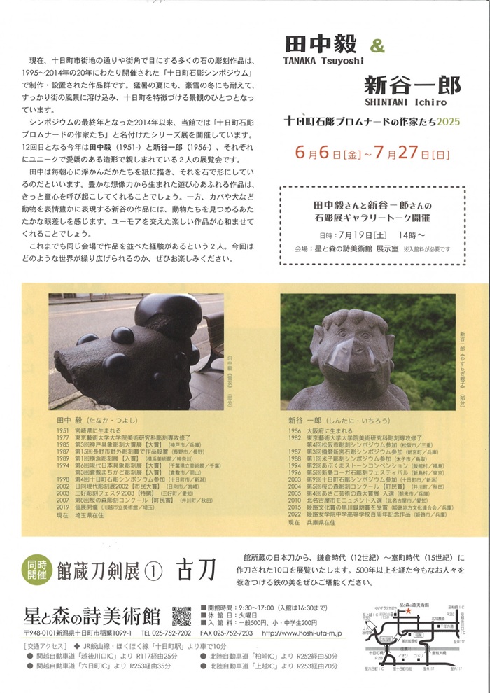 名称:「十日町石彫プロムナードの作家たち 2025 【同時開催】館蔵刀剣展① 古刀」星と森の詩美術館