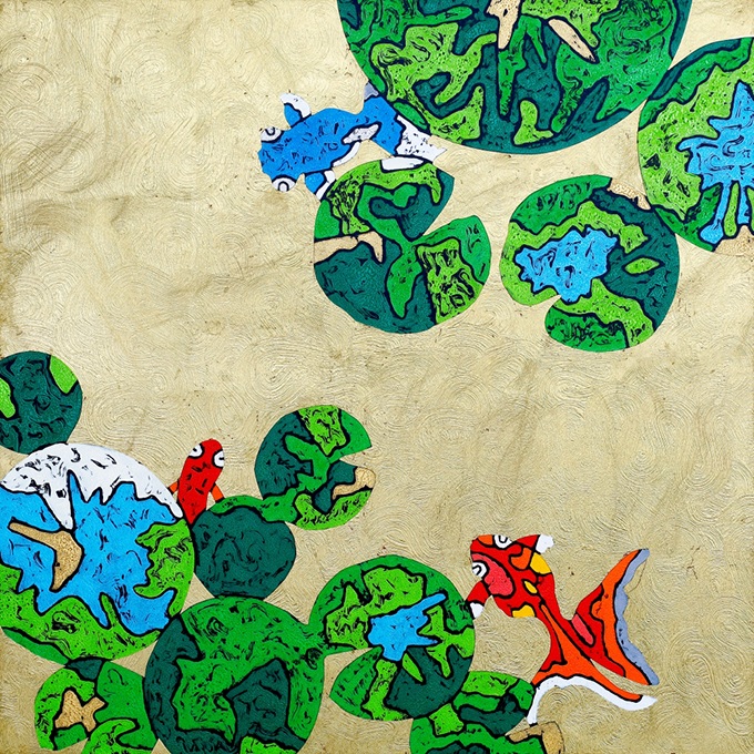 木版モノタイプによる唯一無二の表現を追求する北嶋勇佑が、縁起の良い動物たちを題材に、生命の輝きと色彩の響きを描きます。伝統的な吉祥モチーフを独自の感性で捉え、一作限りの木版画で新たな世界を創出します。本金箔を用いた新作は、光の移ろいにより表情を変え、静と動が交差する瞬間を映し出します。