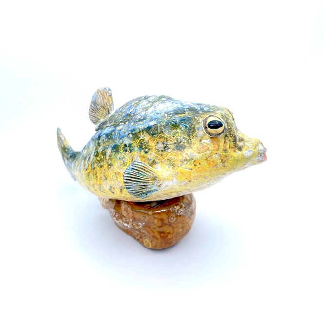 陶芸の世界に息づく生命の輝きを、いきものをモチーフにした陶作品で表現する井上真利。土の質感や釉薬の表情を大切に、手のぬくもりが感じられる様ざまないきものを生み出しています。作品のひとつひとつに豊かな面もちや動きを感じ、物語をイメージしながら鑑賞していただけると幸いです。